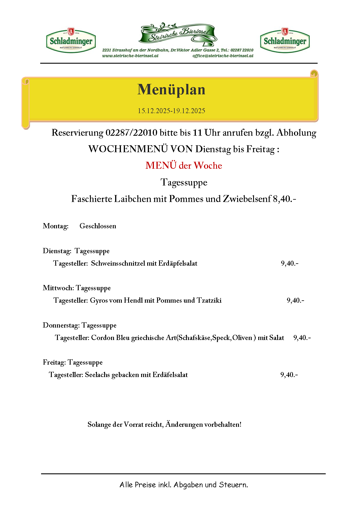 Menuplan 15.12. bis 19.12.2025