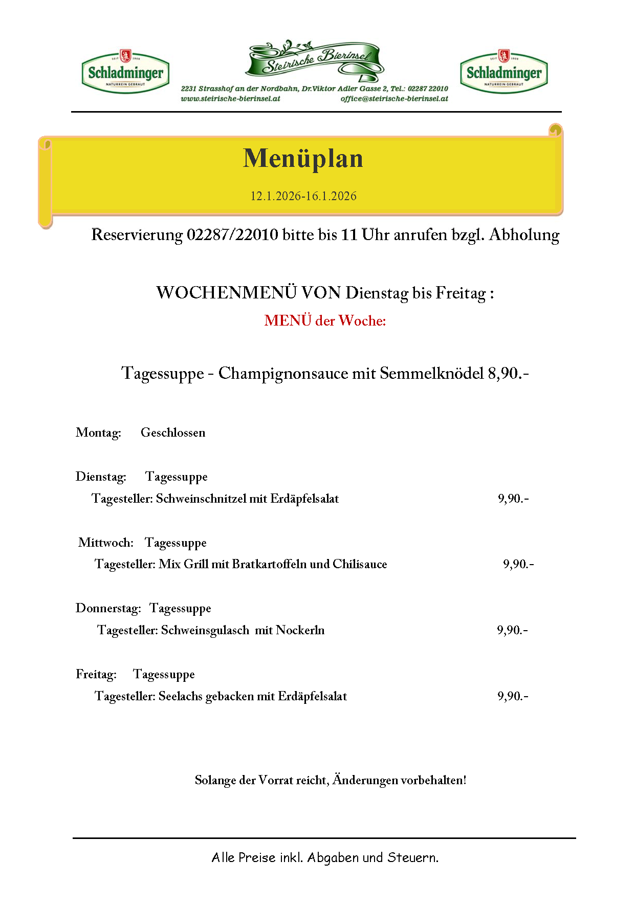 Menuplan 12.1. bis 16.1.2026